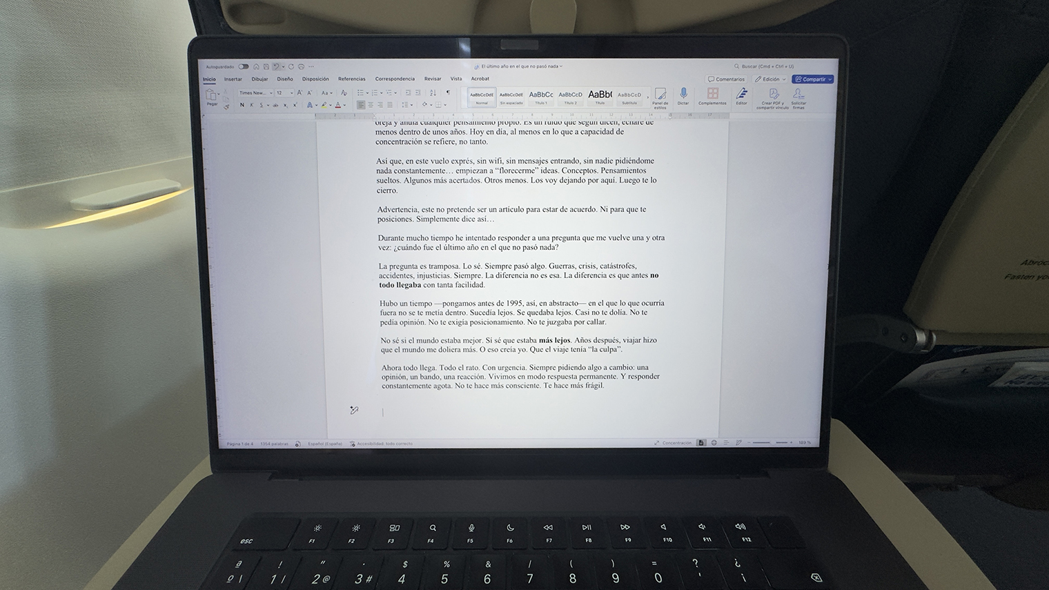 Así que, en este vuelo exprés, sin wifi, sin mensajes entrando, sin nadie pidiéndome nada constantemente… empiezan a “florecerme” ideas. Conceptos. Pensamientos sueltos. Algunos más acertados. Otros menos. Los voy dejando por aquí. Luego te lo cierro.